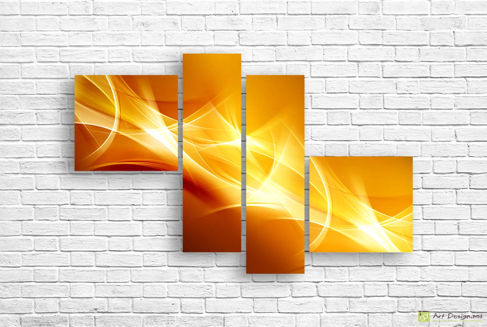 ✅ Tablou modular abstract cu linii aurii și lumină caldă. ✓ Atmosferă elegantă și confort vizual. 🚚 Livrare în Chișinău și Moldova. ⭐ Art-Design.md