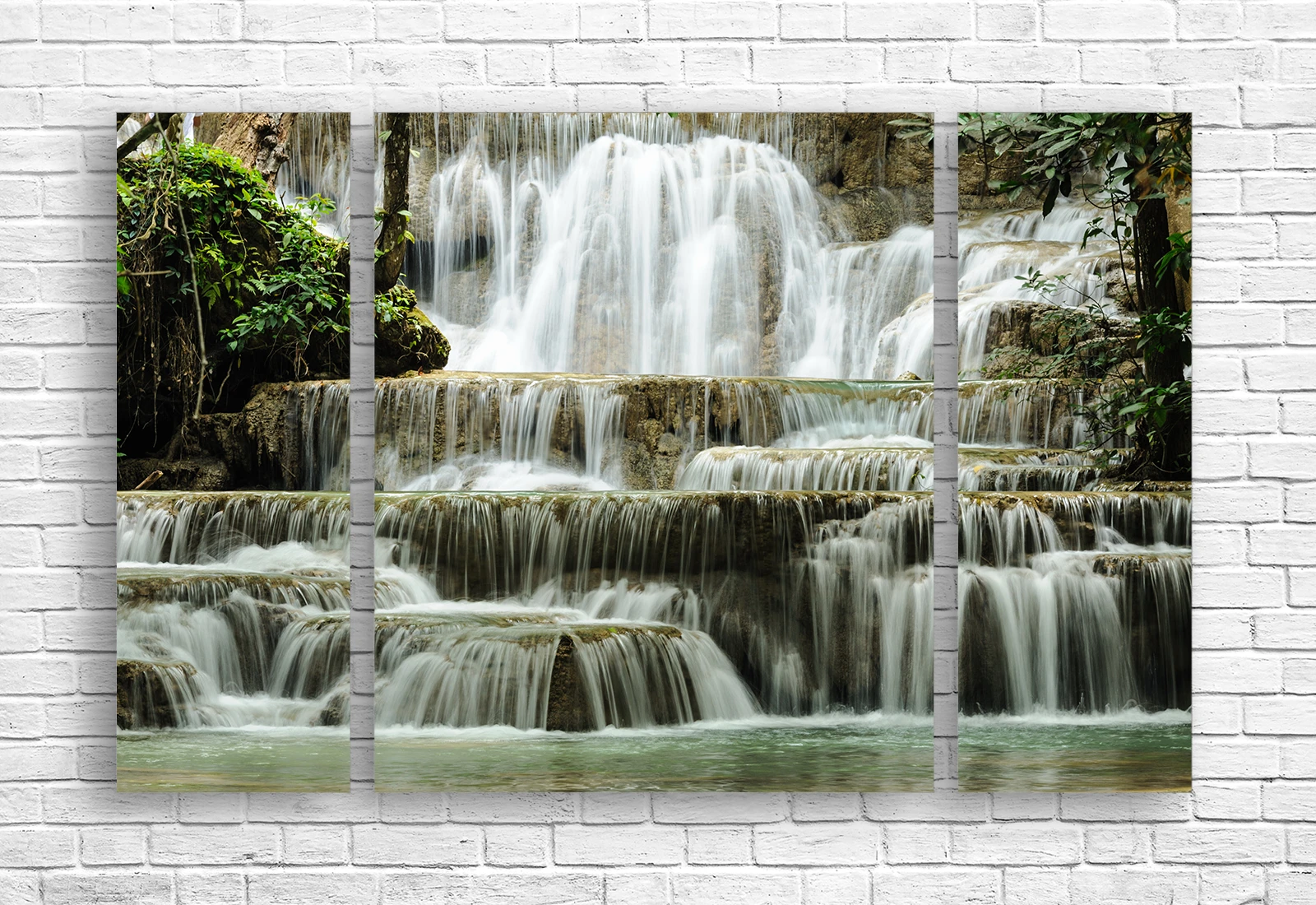 Acest tablou modular ce ilustrează o cascadă spectaculoasă în inima unei păduri luxuriante este soluția ideală pentru a crea o oază de relaxare în locuința dumneavoastră. Compoziția formată din trei piese oferă o profunzime vizuală remarcabilă, transformând orice perete monoton într-o fereastră către natură. Producem tablouri în Chișinău la standarde premium, utilizând tehnologie de imprimare de ultimă generație pe pânză de bumbac.